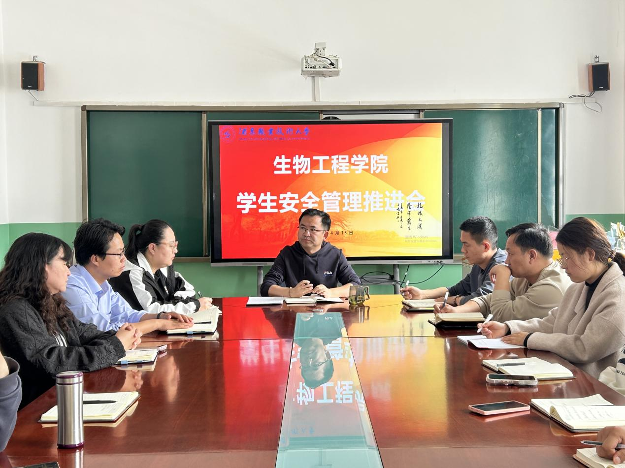 为进一步强化学生安全管理,压实主体责任,保障学生健康成长,4月15日下午,生物工程学院组织召开学生安全管理工作专题推进会。会议由学院副院长庞捷主持,学院辅导员、2022-2024级班主任等20余人参会。