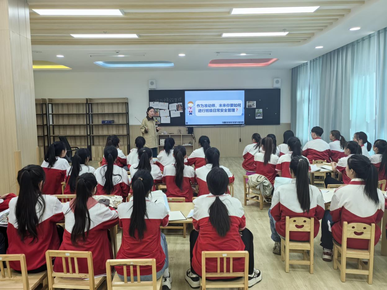 公开课展示环节中,贺老师在《乐理基础》课上,用身体感知节拍变化,在律动中破解“附点节奏”密码,展现音乐理论教学的趣味化探索;李老师的《幼儿园班级管理》课堂化身为“模拟幼儿园”,学生分组扮演教师、幼儿、家长三重角色,动态演练班级常规建立策略;胡老师在《学前儿童心理发展》课程中,引导学生用“情绪温度计”和“绘画日记”等工具,分析3-6岁年龄段幼儿的典型心理行为。