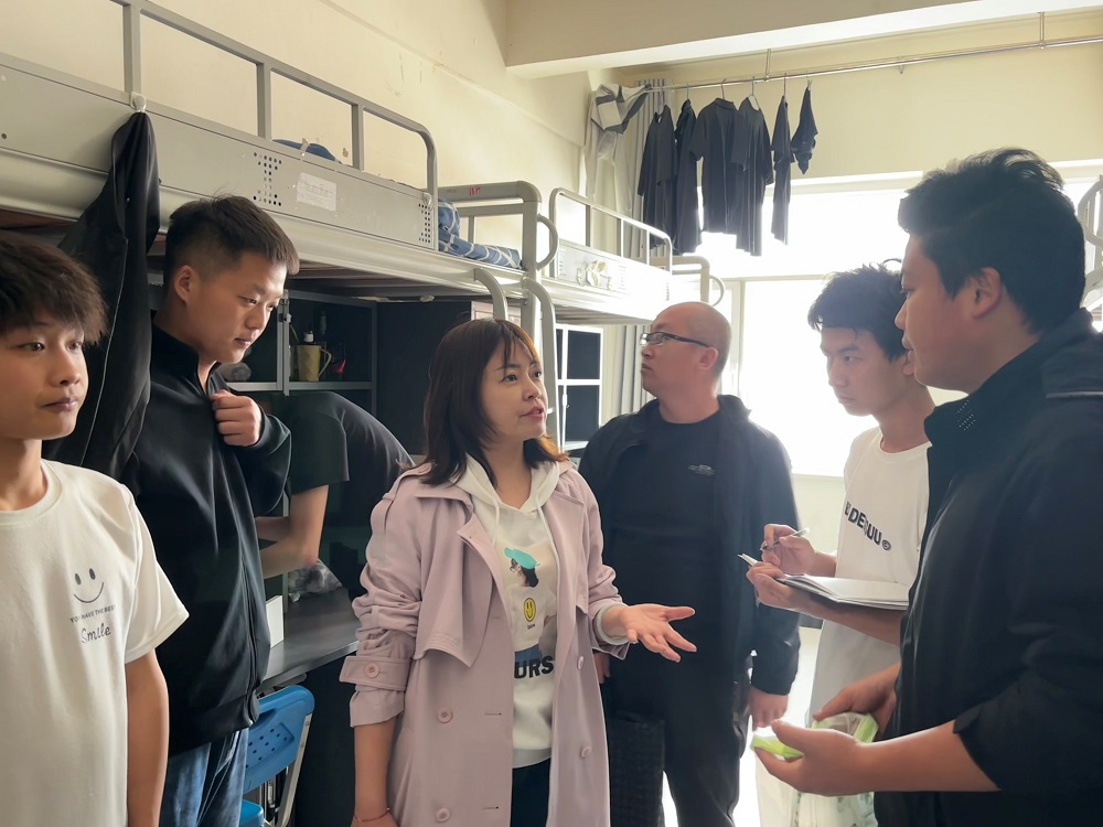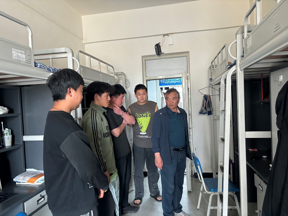 4月27日上午,学院领导班子带队深入学生宿舍,开展安全隐患专项排查。党支部书记、院长刘兴龙等一行重点检查了宿舍用电安全、消防设施、卫生环境等情况,对违规使用大功率电器、私拉电线等隐患现场督促整改,并与学生亲切交流,强调“安全无小事”,叮嘱同学们离宿前关好门窗、切断电源,注意交通安全和人身财产安全。