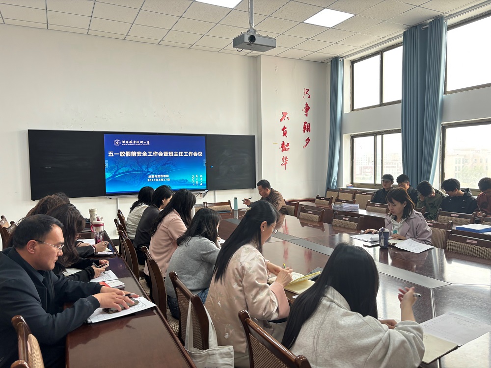 4月27日下午,学院组织召开“五一放假前安全工作会暨班主任工作会”,就学生日常管理及假期安全工作进行专项部署。会议集中传达了《酒泉职业技术大学关于开展校园不文明行为整治活动的通知》《学生防溺水安全宣传教育工作的通知》等文件精神,要求全体班主任以案为鉴、警钟长鸣,切实强化安全责任意识。同时从四方面细化任务落实:一是要求各班节前全覆盖召开安全教育主题班会,重点普及防溺水、防诈骗及交通出行安全知识;二是通报剖析近期校园安全事故典型案例,深化警示教育成效;三是加强对重点群体、特殊学生的动态跟踪与心理疏导;四是严格执行值班教师24小时在岗制度,确保突发情况快速响应处置。