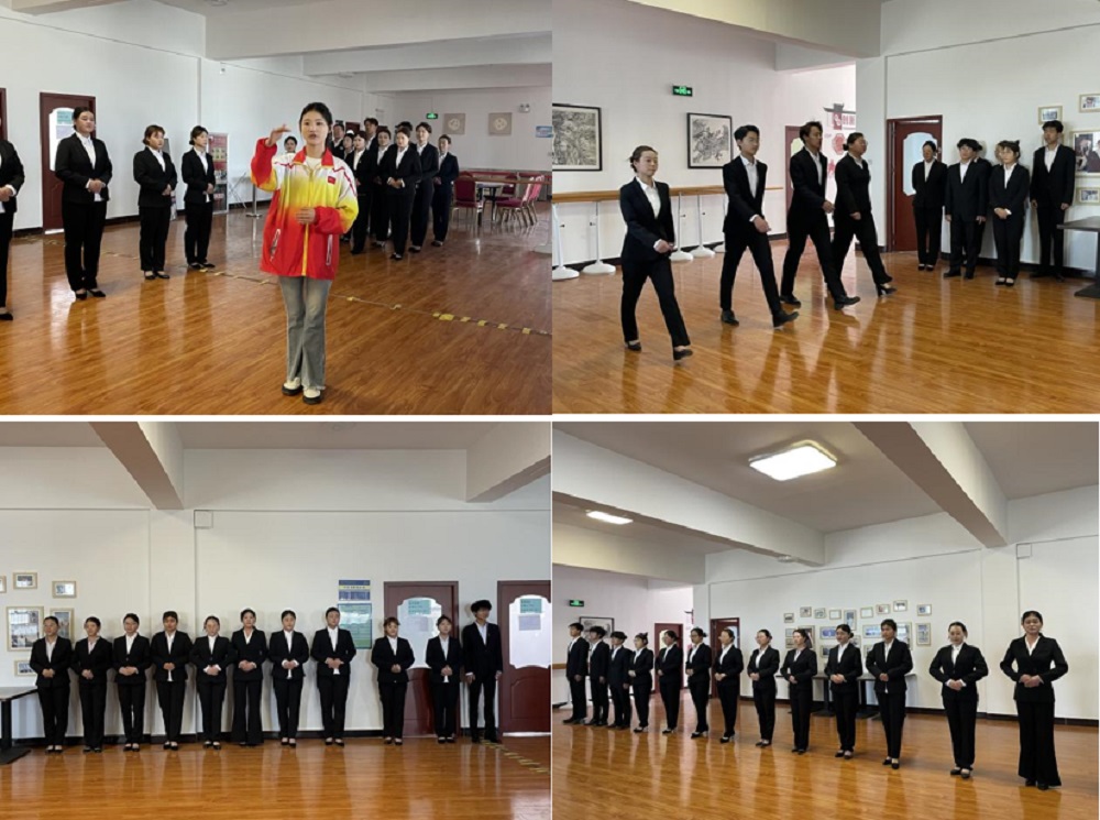 随后全体学生进行托盘、走姿、微笑等酒店服务技能的现场展示,全方位呈现特色晚自习教学效果,学生们用温暖而真诚的笑容传递出餐饮服务行业“以客为尊”的核心理念,学生们的展示得了在场师生们的肯定。