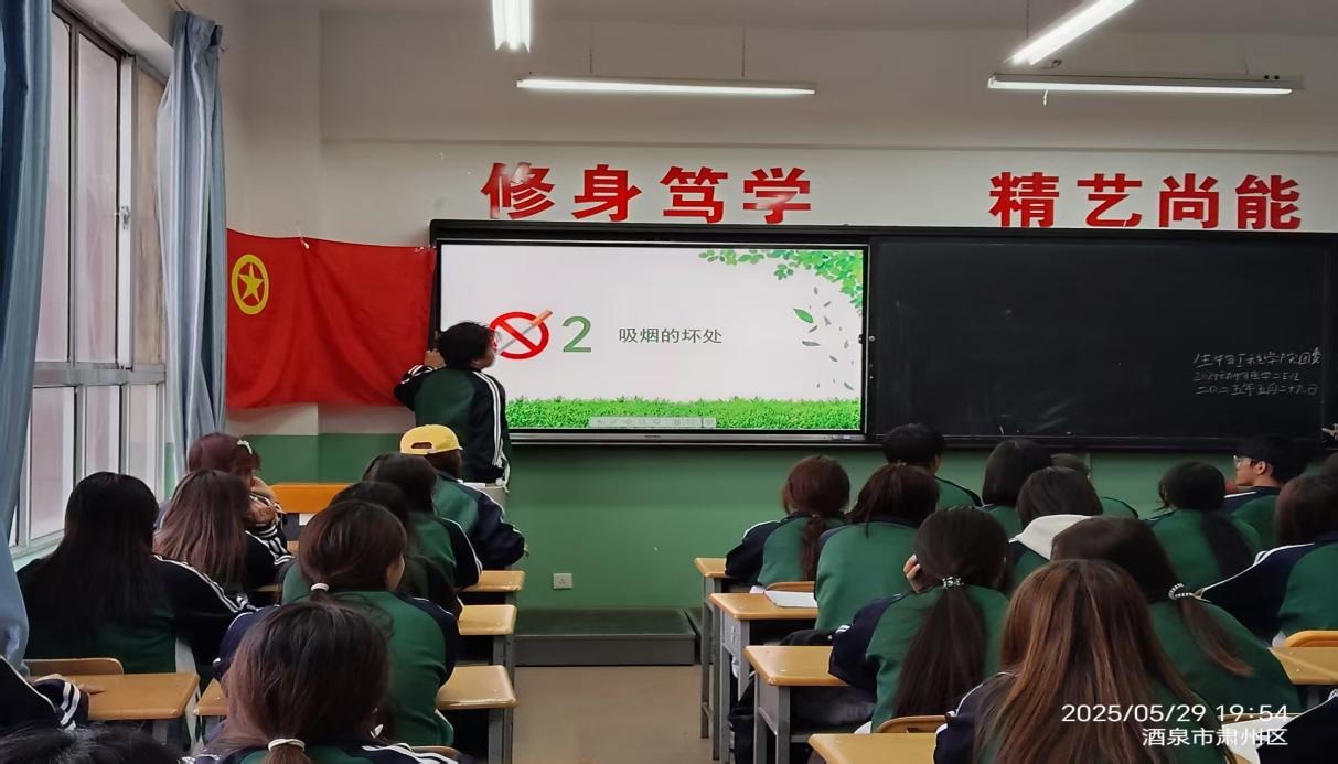 班会以专业视角切入烟草危害核心。深入剖析了烟草烟雾中焦油、尼古丁等有害物质对呼吸系统、心血管系统的破坏性影响,并结合医学知识,讲解了尼古丁如何作用于大脑受体引发成瘾机制,以及吸烟如何显著增加罹患肺癌等多种恶性疾病的风险。讲解内容既具科学深度又贴近学生认知,使同学们对“吸烟等于慢性自杀”这一论断有了具象化的理解。