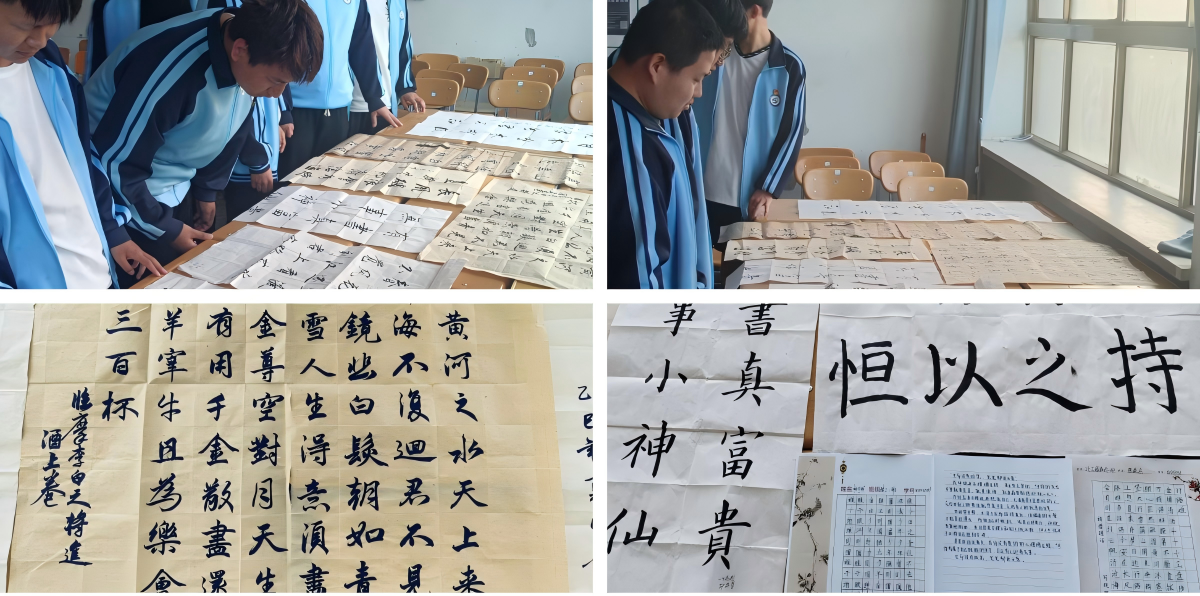 软笔与硬笔书法作品展区墨香四溢,同学们以诗词楹联、名言警句为内容,挥毫泼墨。《将进酒》临摹作品笔法细腻,硬笔《少年中国说(节选)》铿锵有力,传递出青年学子对中华优秀传统文化的传承。