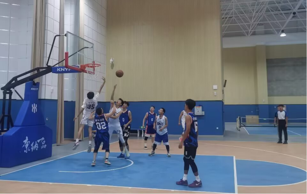 参观结束后,一场激烈而友好的篮球联谊赛在学校篮球馆拉开帷幕。化工学院代表队与玉门东建材化工园区管委会及企业联合代表队展开了精彩对决。赛场上,队员们斗志昂扬、配合默契,精准的投篮、巧妙的传球、严密的防守,不时引来场边观众的阵阵喝彩。这场篮球联谊赛不仅丰富了大家的文体生活,更搭建了一个轻松愉快的交流平台,让校政企三方人员在挥洒汗水的同时,增进了友谊、拉近了距离。