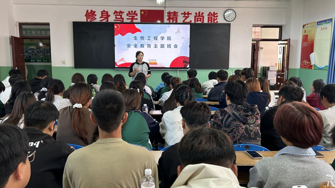 国庆长假将至,为切实增强学生的安全防范意识,保障学生度过一个平安、愉快、充实的假期,生物工程学院各年级于9月28日至29日期间,陆续组织召开了“国庆假期安全教育”主题班会。本次系列班会覆盖全院本、专科所有班级,由各班班主任主持,旨在将安全教育落到实处,筑牢校园安全防线。