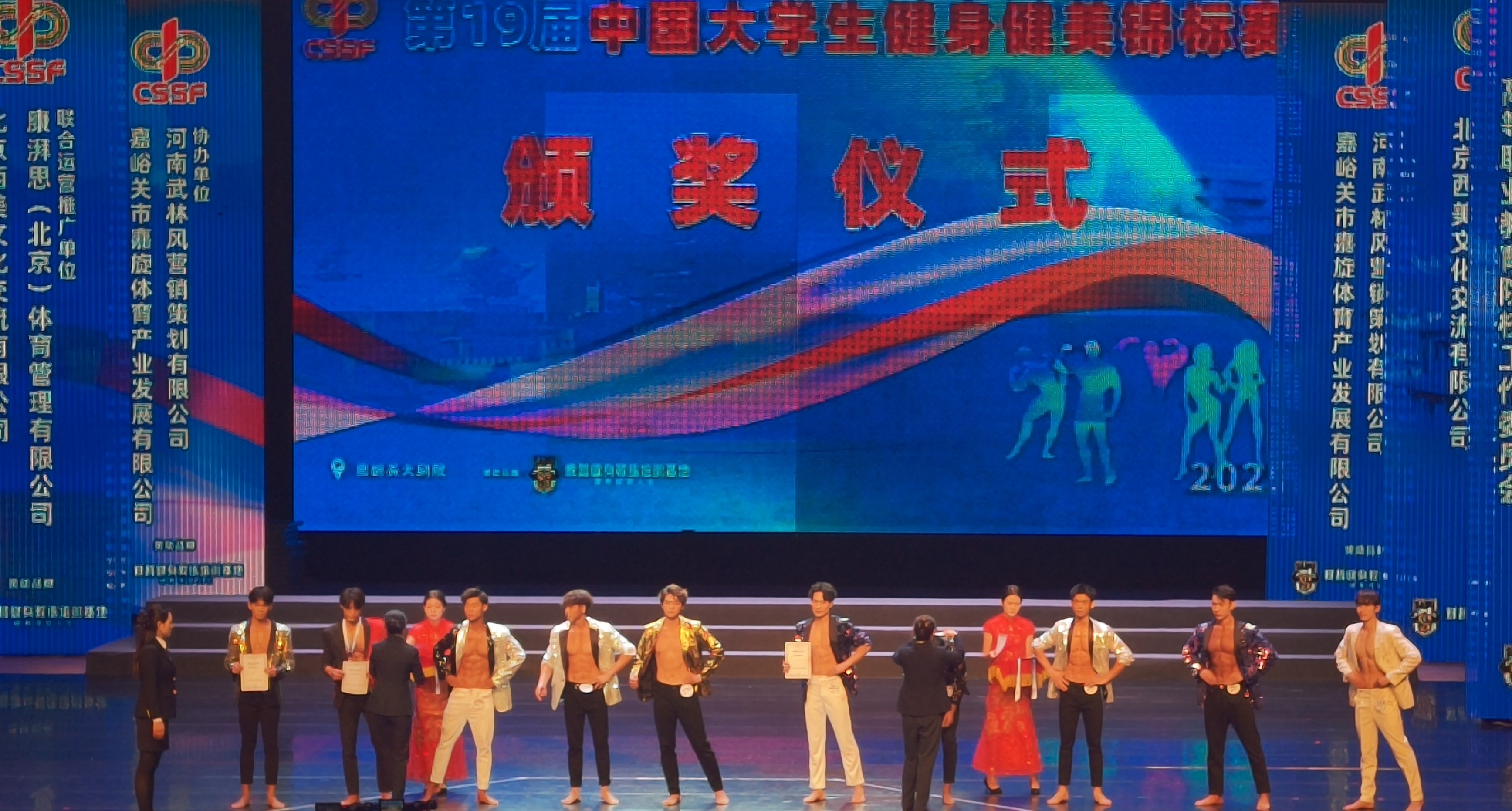 姚满文同学获得男子健身模特乙A组第四名;靳建彤同学获得男子健身模特乙B组第五名;王彦强同学获得男子健身乙A组第七名;鲁军誉同学获得男子健体乙B组第八名。