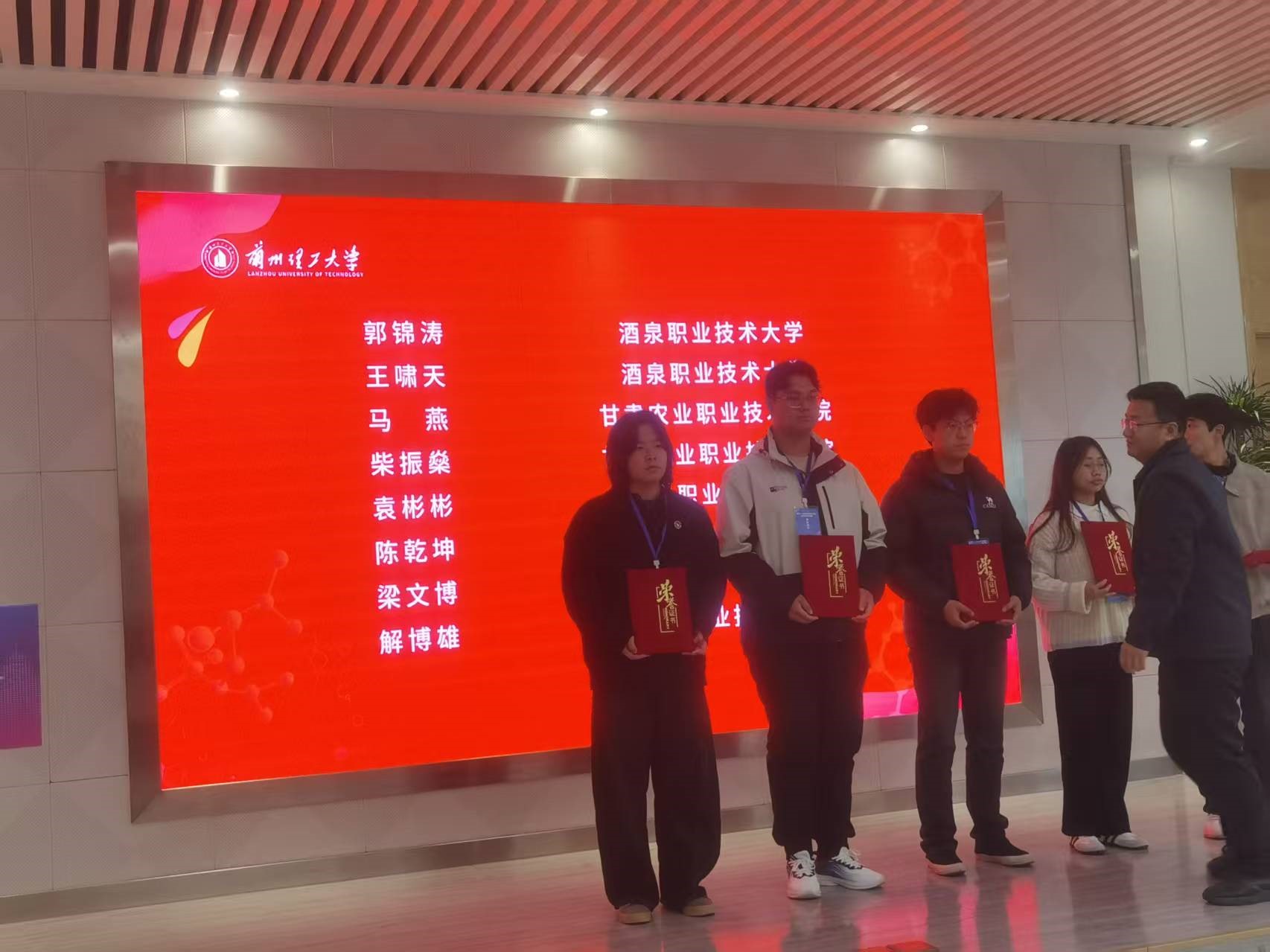 2025年11月8日,第十一届甘肃省大学生化学竞赛在兰州理工大学彭家坪校区成功举办。经过激烈角逐,我校学子表现突出,斩获佳绩:代表队在高职组中荣获团体一等奖,充分彰显了我校以职业能力培养为核心的专业教学成果,以及学生过硬的专业技能和综合职业素养。