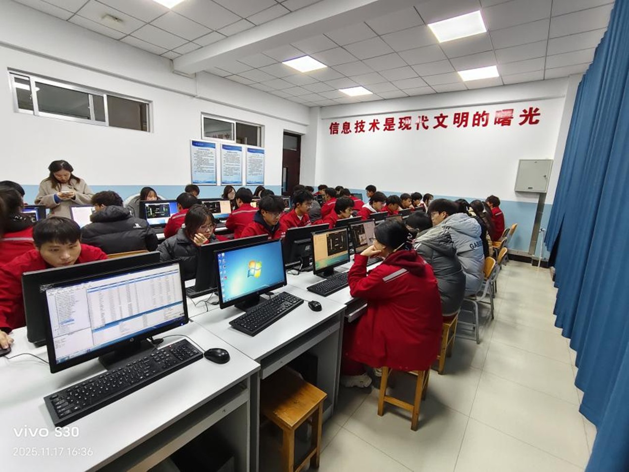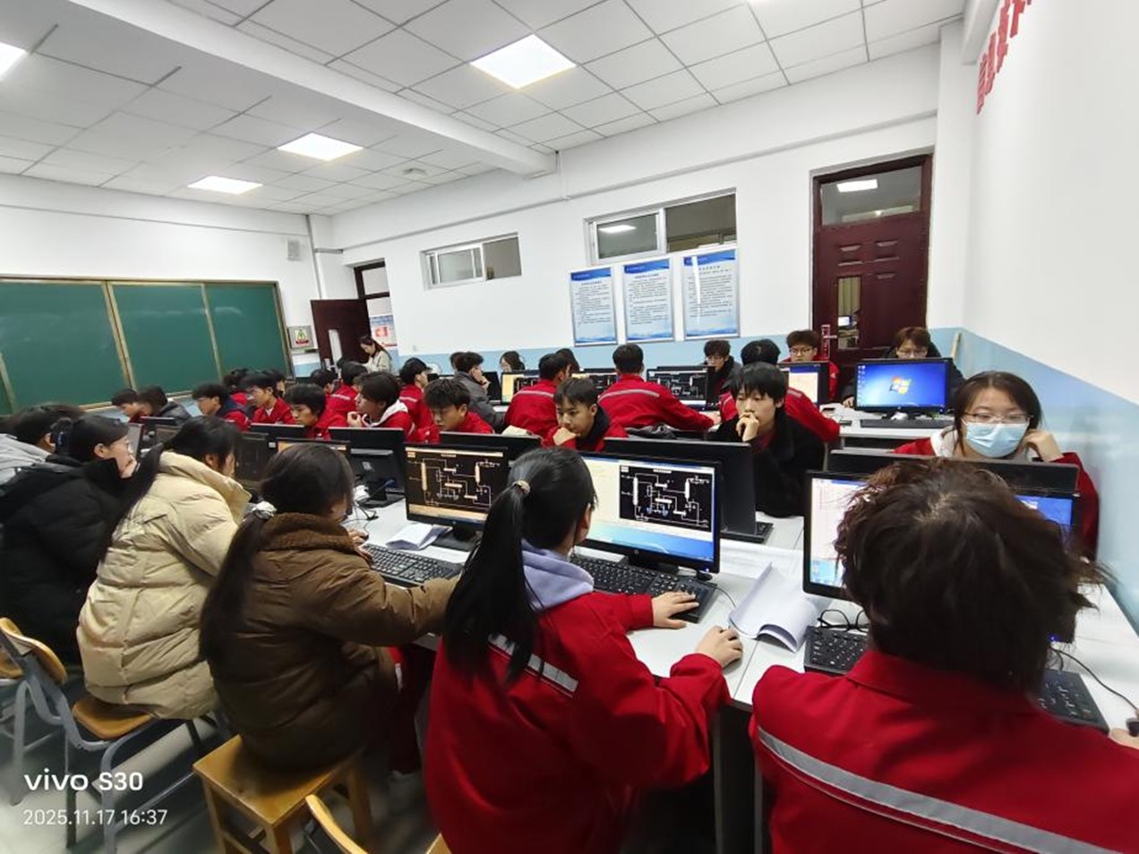 大赛设置理论知识考核与仿真操作考核两大环节。理论考核采用学习通平台进行,选手们沉着应答,展现出扎实的专业基础,计算机自动阅卷系统高效完成评分,现场秩序井然。