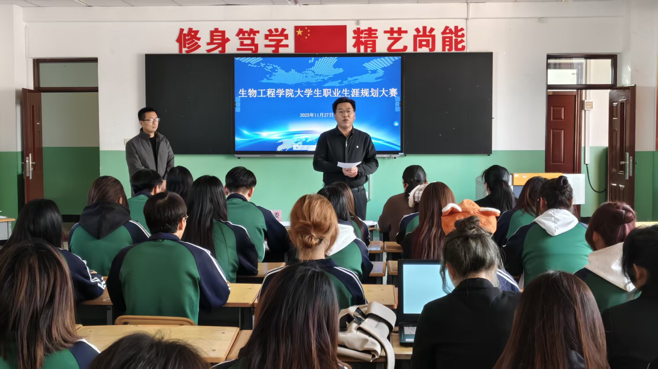 11月27日下午,生物工程学院成功举办第三届全国大学生职业规划大赛院级选拔赛。学校就业指导中心主任张辉受邀担任评委并做了赛前指导,学院师生代表共50余人现场观摩。