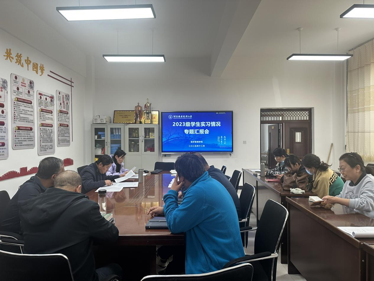 为全面掌握2023级学生实习动态,筑牢实习过程管理防线,持续提升实践教学质量,12月5日,经济管理学院在经世楼一楼会议室召开学生实习情况专题汇报会。学院领导、实习指导老师及相关班主任参会,会议围绕实习管理核心任务有序推进。