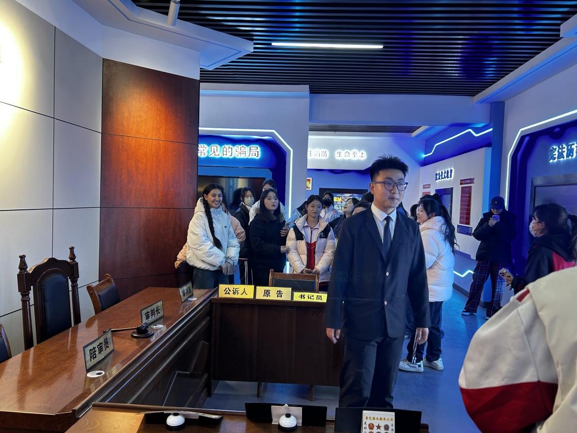 随后,同学们移步青少年法治教育基地,通过典型案例剖析、法律条文解读、模拟法庭、普法教育互动等形式,直观揭露邪教反科学、反社会、反人类的本质。活动全程秩序井然,同学们纷纷表示,要将爱国情怀与法治思维、反邪教使命深度融合,进一步升华责任意识。