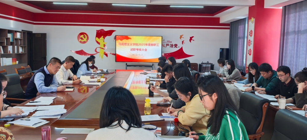 为全面总结2025年度各项工作成效,客观评价教职工履职表现,进一步凝聚发展共识、明确奋进方向,1月6日,马克思主义学院2025年度教职工述职考核大会在学院会议室顺利召开。会议严格按照既定议程,依次开展教职工述职汇报与民主评议背对背测评打分环节,全面检验学院年度工作成果与教职工综合素养。