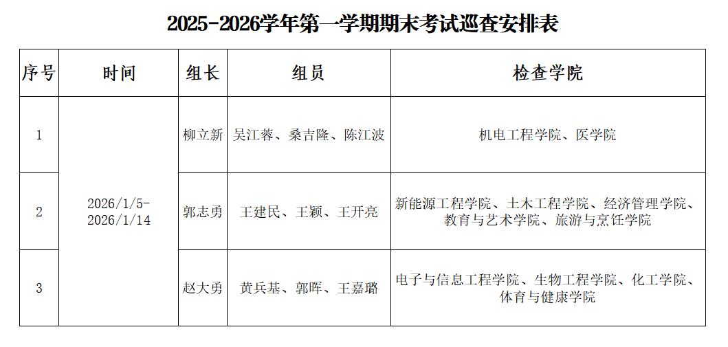 2026年1月5日至12日,教务处组织专项巡查组,对全校期末考试工作进行了全面巡查和督查。巡查工作重点围绕考务组织、考场纪律、监考规范等关键环节展开,通过查阅考试安排,督促考试计划落实,深入掌握期末考试组织实施情况。