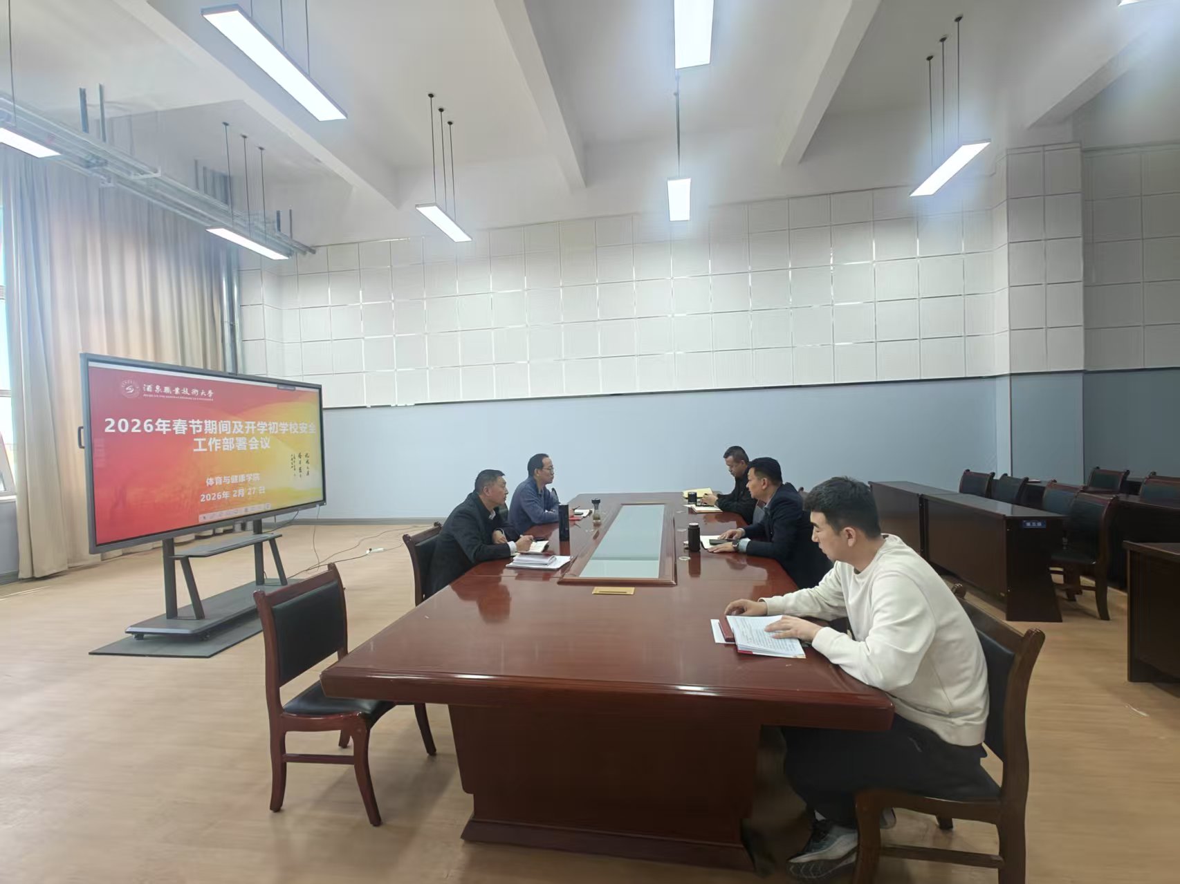 为切实做好2026年春节期间及春季开学初的校园安全稳定工作,2月27日上午,体育与健康学院在学院会议室召开专题安全工作部署会议;学院领导班子成员参加了会议。