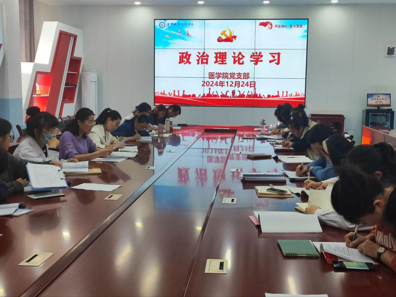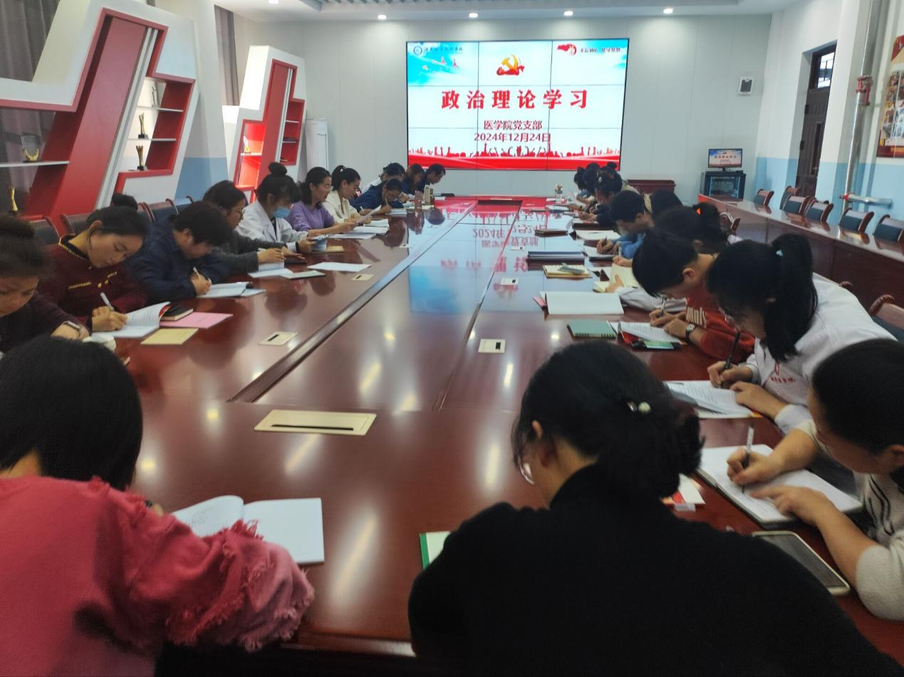 12月24日下午,医学院在弘远楼A501会议室进行教职工政治理论学习大会,会议由党支部副书记段国萍主持,学院全体教职工参会。