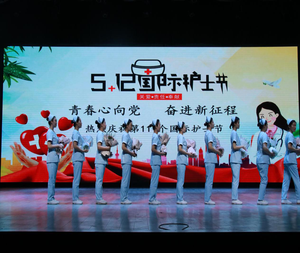为庆祝第111个国际护士节,迎接二十大召开,医学院于5月12日晚在胡杨文化活动中心举办了“青春心向党,奋进新征程”国际护士节文艺晚会暨颁奖典礼。解放军联勤保障部队第944医院院长王延安,酒泉职业技术学院党委书记、校长易志军,944医院全体护士长及医学院全体教师和学生代表参加了此次活动。