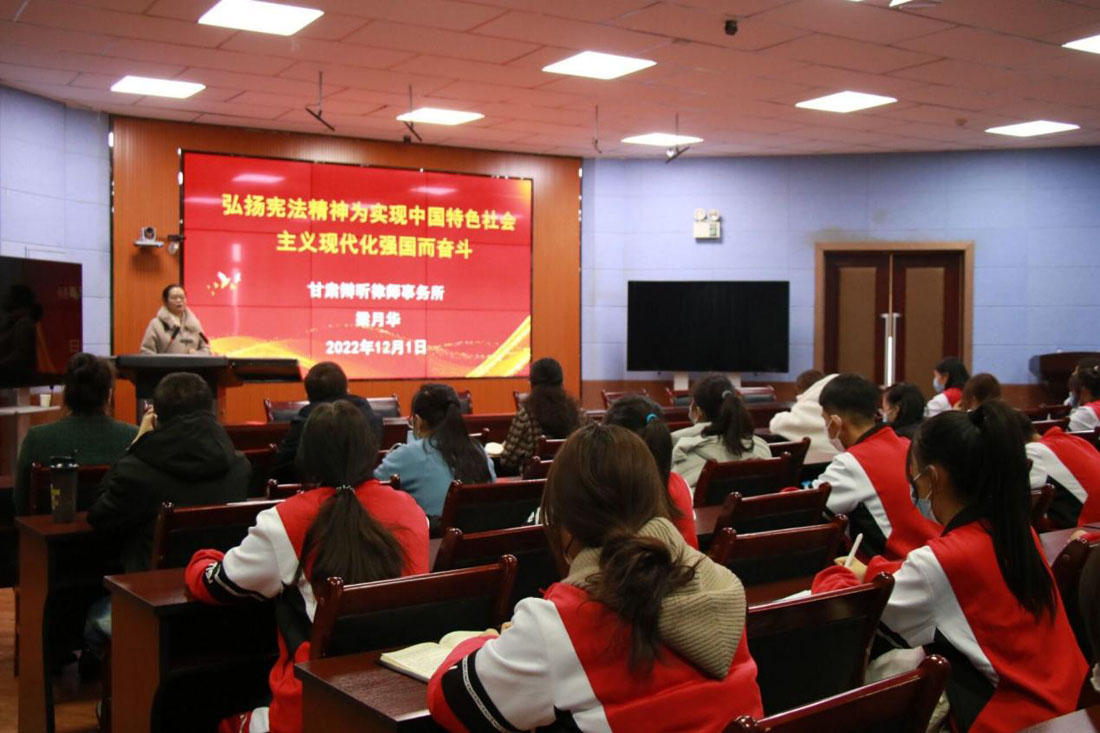 为学习宣传贯彻党的二十大精神,认真学习习近平法治思想,持续推动大学生学生宪法学习宣传教育走深走实,根据酒泉职业技术学院关于组织开展2022年宪法宣传周活动的通知要求,在第九个国家宪法日来临之际,12月1日医学院在经世楼录播厅邀请甘肃辩听律师事务所的梁月华律师开展宪法宣讲学习,全体在校教职工和部分学生参加。